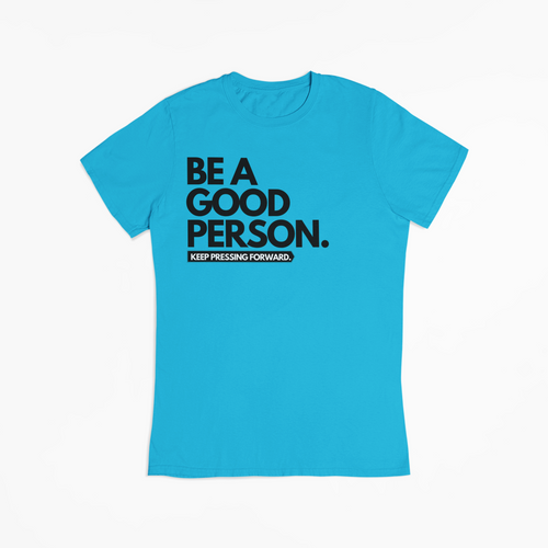 • "BE A GOOD HUMAN" TEE (PACIFIC BLUE/BLACK)